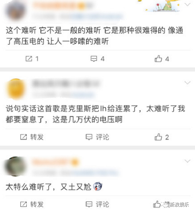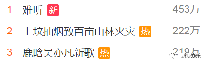 BUT啊,#鹿晗吴亦凡新歌# 关键词上热搜后,紧接着#难听#也上了热搜,还冲上了榜一。