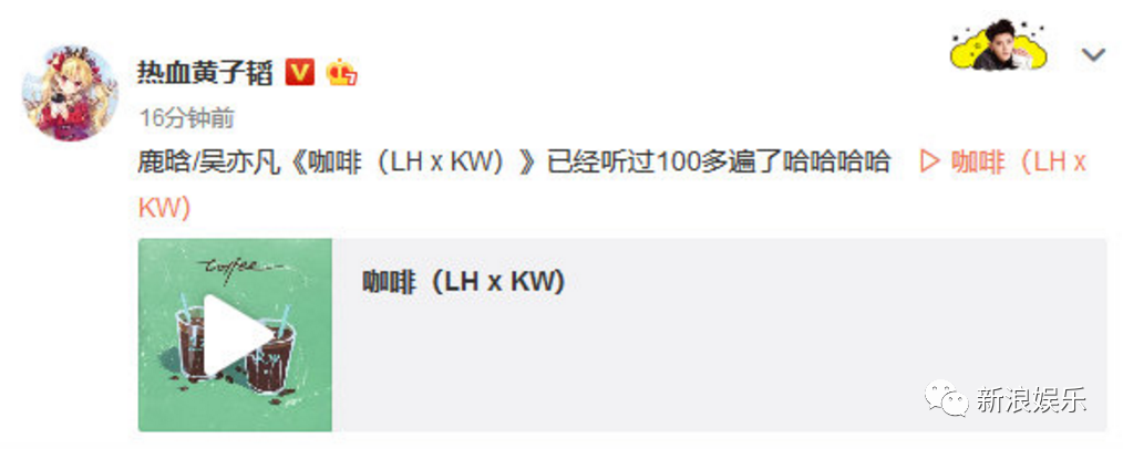 歌曲刚发布,另外一边的黄子韬超够义气,马上帮忙打call↓