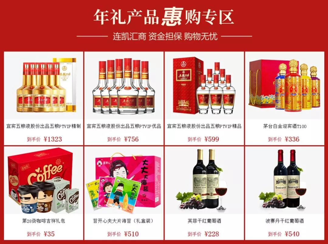 春节临近,为了回馈各位经销商对连凯软件的信任与支持,连凯汇商特地甄选了一批诸如五粮液、茅台等优质年礼产品推荐给广大经销商。经销商们能以低于市场的价格购入这些产品,既可以在团购渠道销售,也可以用来内部员工的福利发放或当做走亲访友的礼品。