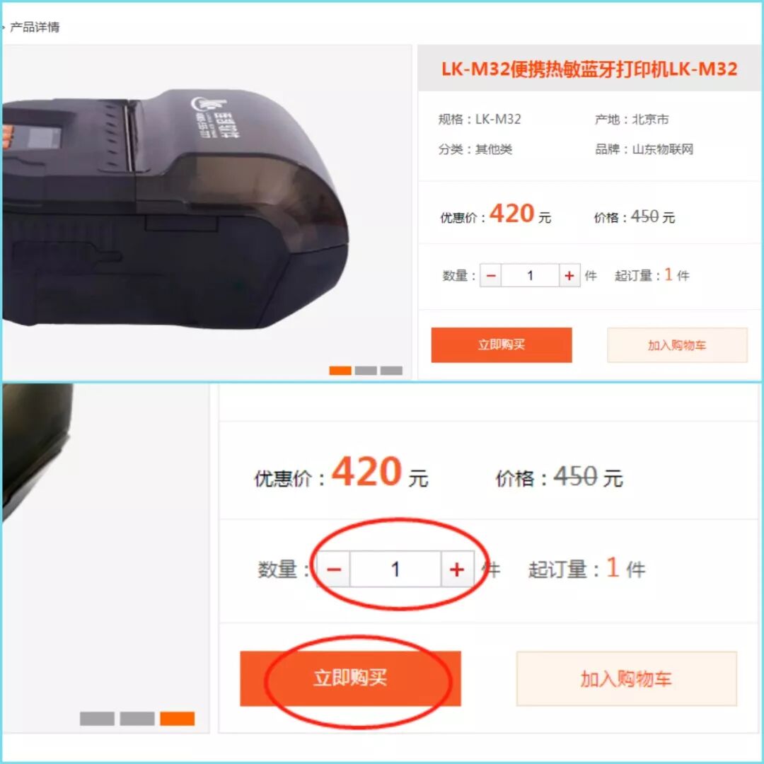 02 进入连凯汇商团购商城,选择要购买的产品,以“LK-M32便携热敏蓝牙打印机”为例;