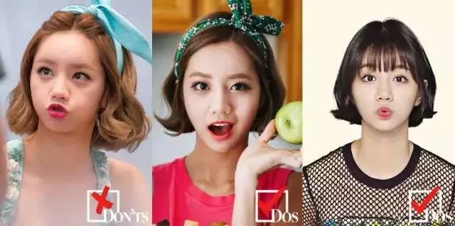 如果短波波的发尾明显高于下巴脸部下半区则完整暴露在发型外,脸型小缺点非常容易暴露出来;