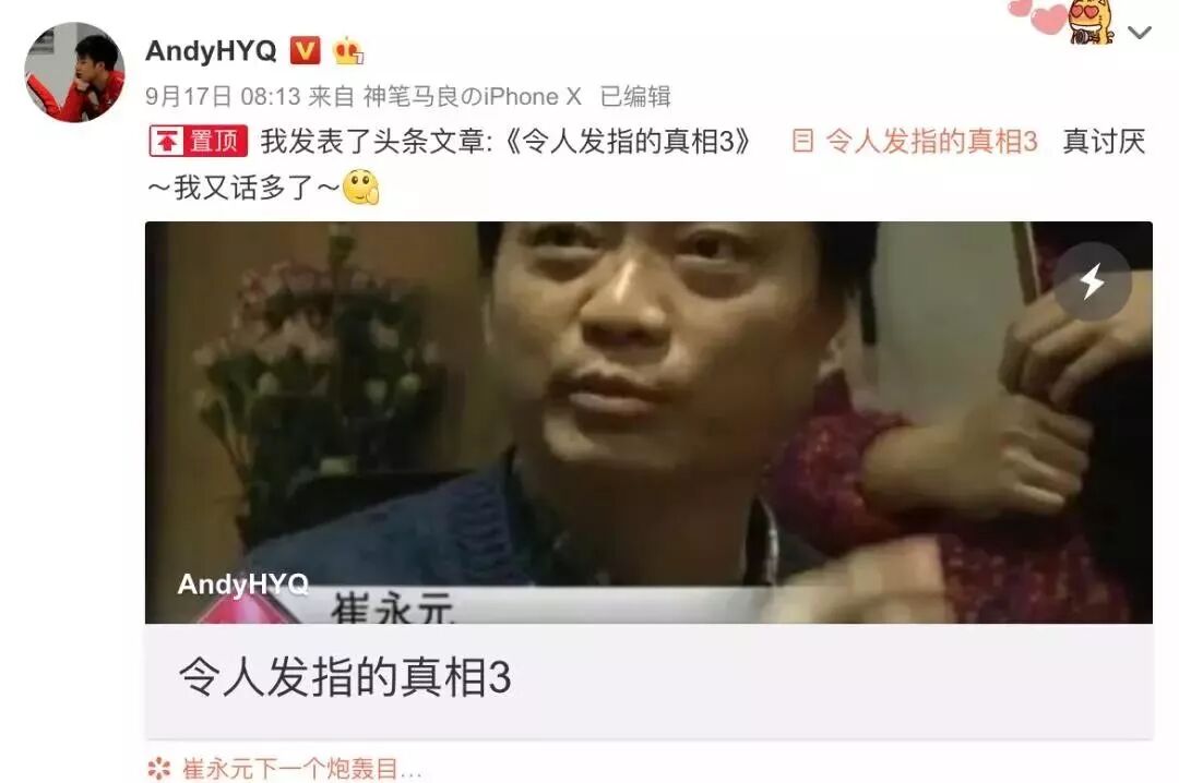 结果黄毅清那个躲呀,一直不露面,之后又发表了一大长篇文章反来控诉崔永元,里头实质内容根本也没啥,不痛不痒的陈年旧闻,至于他说的偷情的证据从头到尾就没见到过。