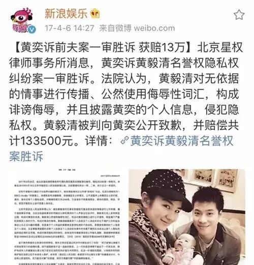 双方都报警了,黄奕也把黄毅清告上法庭,捏造并传播无根据的事,法院判他赔了13万。