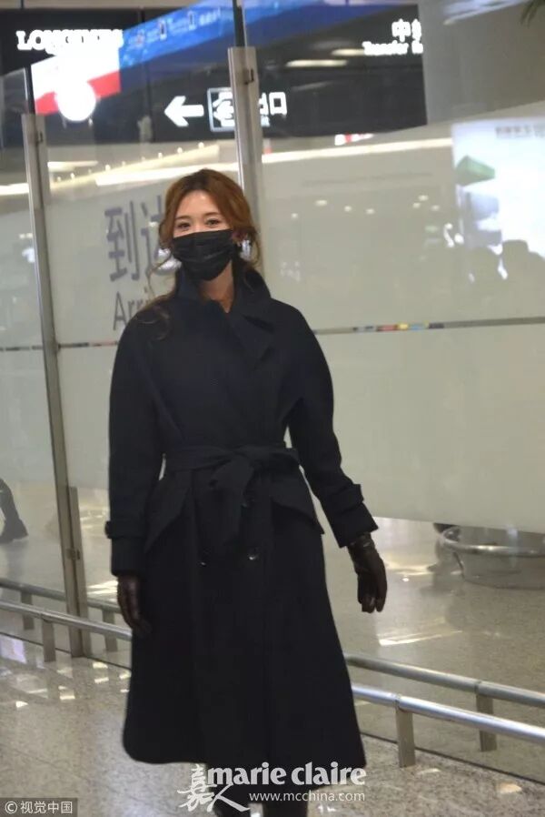 除了少女粉,冬天最不能缺少的自然是神秘大气的黑色大衣了,看女神志玲姐姐这一身的all black,简直酷爆了,她身穿黑色系带毛呢大衣,脚踩黑色过膝长筒靴,手戴棕色皮手套,即使带着口罩都能看到满满的笑意。都说爱笑的女生运气不会差,看志玲姐姐的运气就好的很,嘉姐也要多笑笑啦~