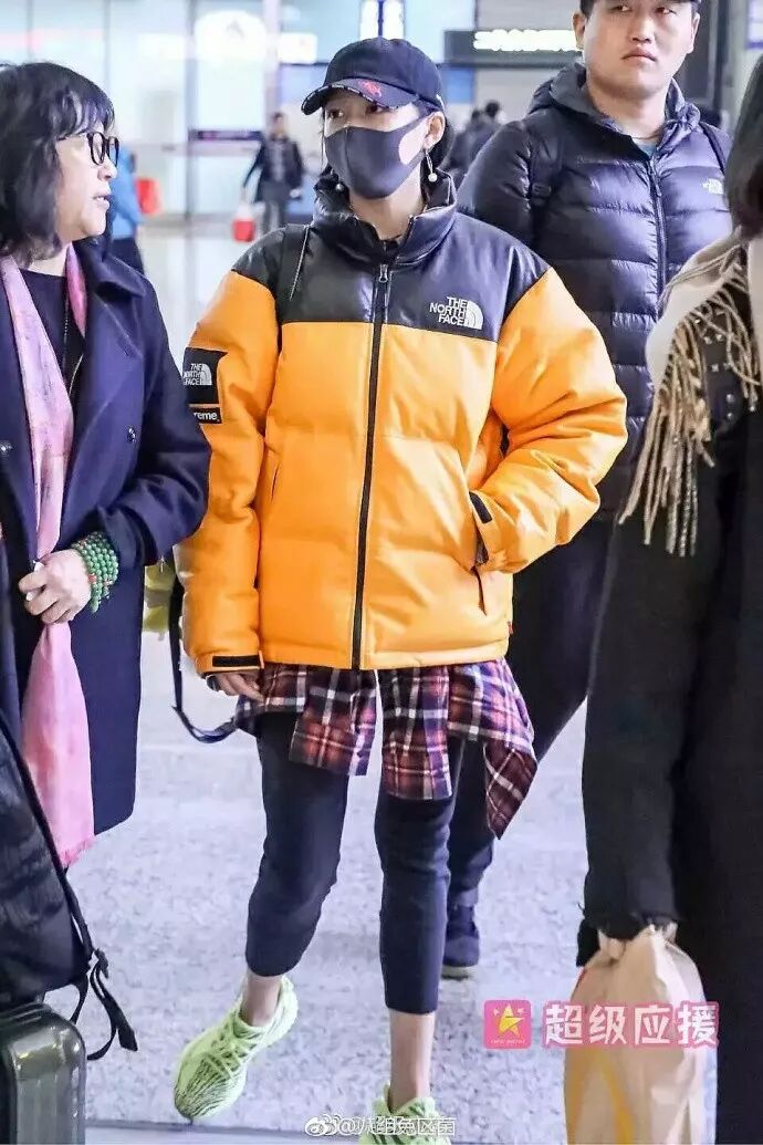 关晓彤在机场被拍到穿的棉服和鞋,鹿晗也有同款还在微博晒过。