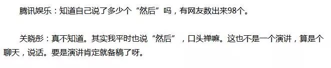 她再后来接受采访的时候说“然后”是她的口头禅,这也不是一个演讲,算是个聊天,说话。要是演讲肯定就备稿了呀。