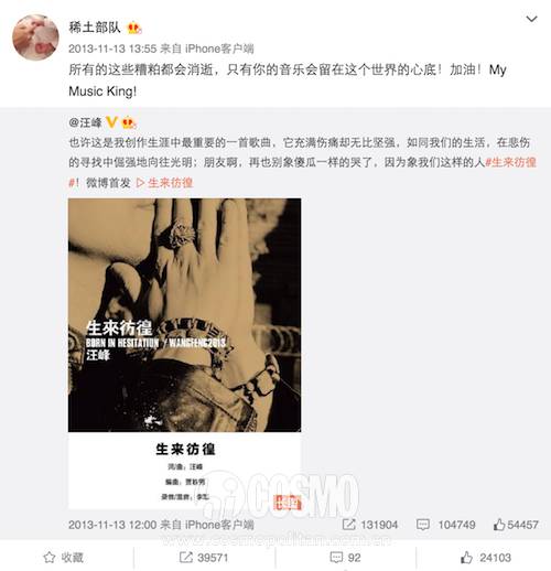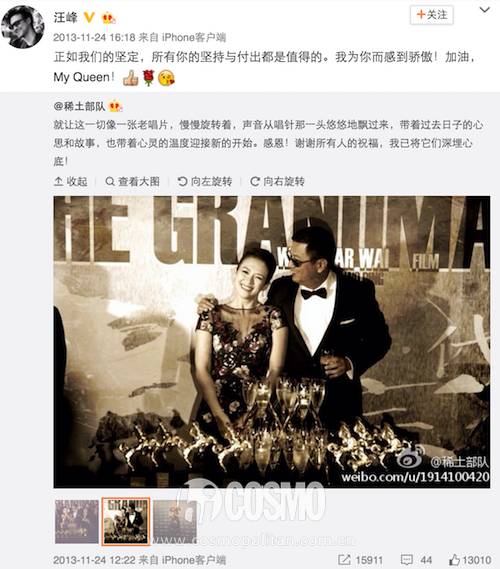 ▲在汪峰发布新歌以及子怡夺得金马影后的关键时刻,两人都是第一时间送上祝福。这表白也是声势浩大,一King一Queen的动情告白真是甜煞众人。