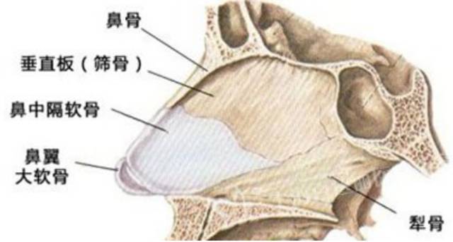 鼻尖这个地方高与矮,取决于一个叫鼻中隔的软骨的高度,这个软骨在我们的两个鼻孔中间,鼻梁的正下方 。
