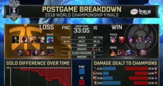 11月3日下午15时,英雄联盟S8世界总决赛巅峰对决在韩国仁川文鹤体育场拉开帷幕。经过3个小时鏖战,来自中国LPL赛区战队IG最终以3:0强势碾压LCS欧洲老牌强队Fnatic,夺得LPL赛区在英雄联盟S赛上的首个世界冠军。
