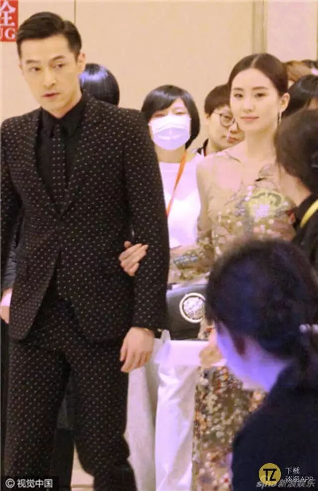 刘诗诗一脸春风的挽着胡歌的手就出来了,刚刚大婚,看起来心情不错。