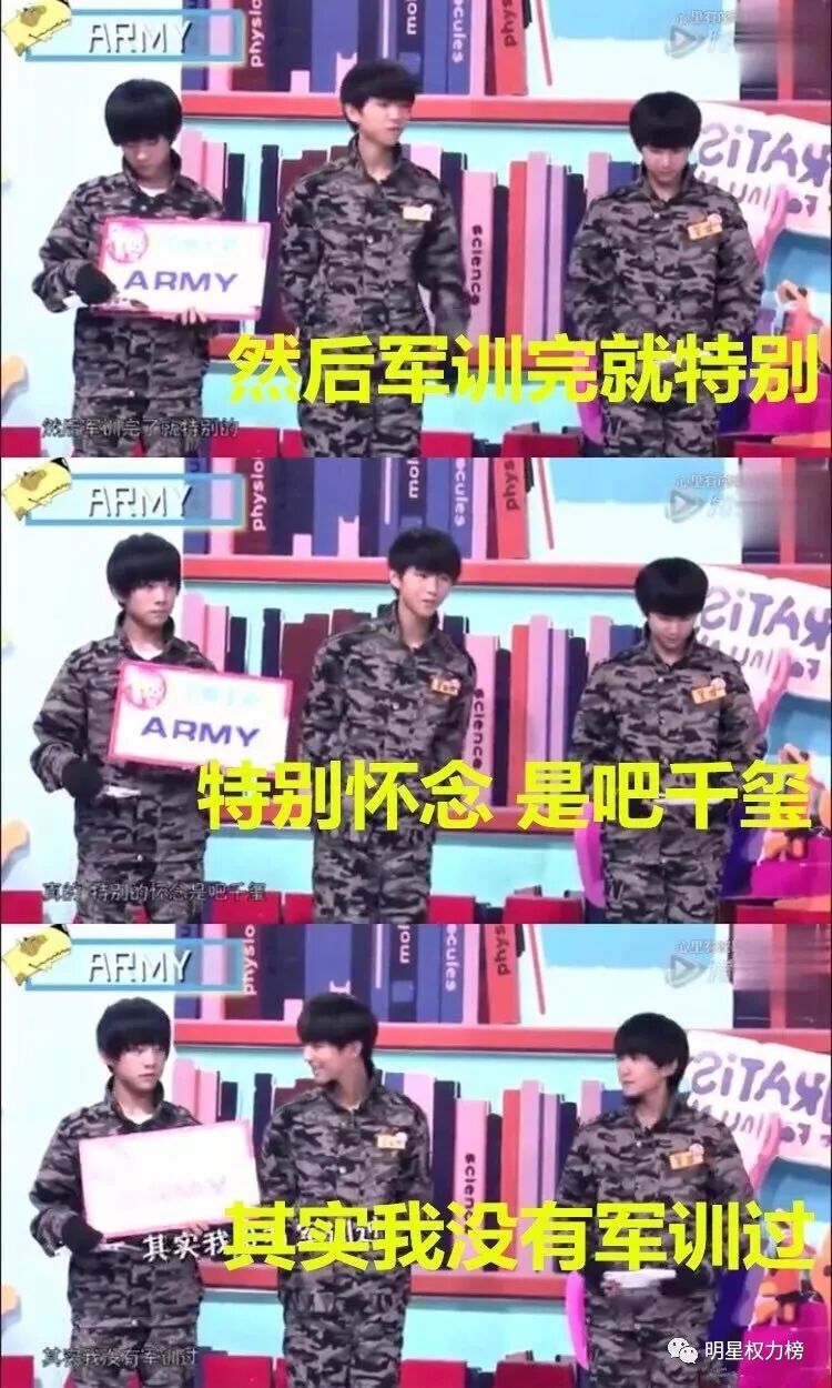 还有再久远一点14年的时候三个人在团综上讲军训,王俊凯问:难道你们对军训的印象就只有苦和累吗?!