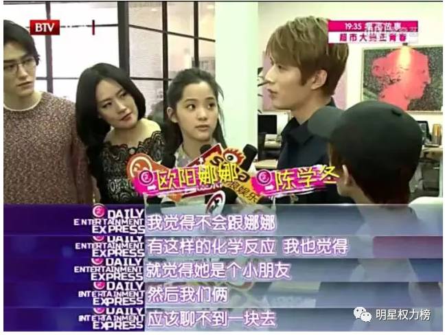 倒是90年的大龄90后陈学冬表示,自己和欧阳娜娜就算演了cp也肯定不会有化学反应。