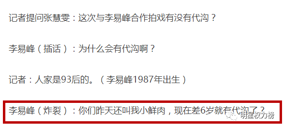 不过还没等张慧雯回答,你峰就气吼吼的表示:昨天还叫我小鲜肉,这差六岁就有代沟啦?