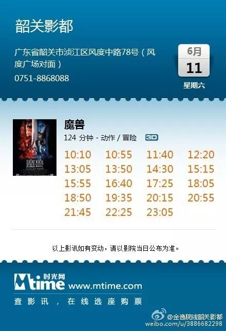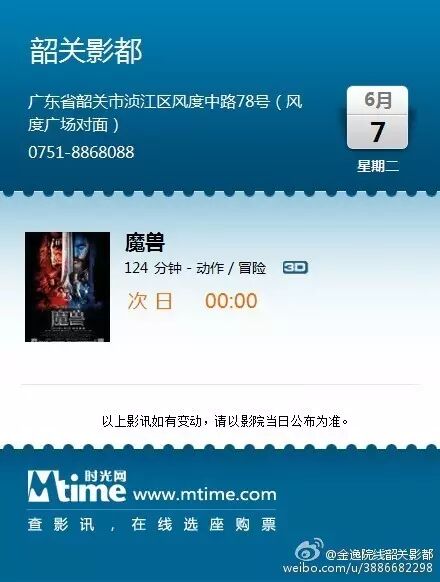 6月5日-6月11日只要关注"韶关影都"公众号: