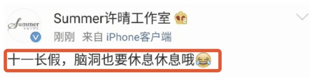 对此,许晴方工作人员迅速辟谣,随后工作室也发文否认了此事,文案还有点可爱:“十一长假,脑洞也要休息休息喔”。