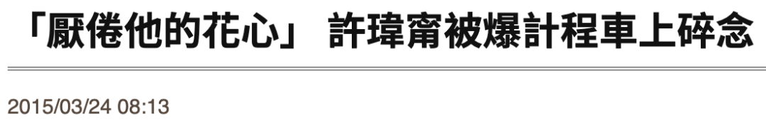 2015年3月,台媒爆料,许玮甯在乘坐出租车时打电话大发脾气,表示自己再也忍受不了男友的花心,执意分手。