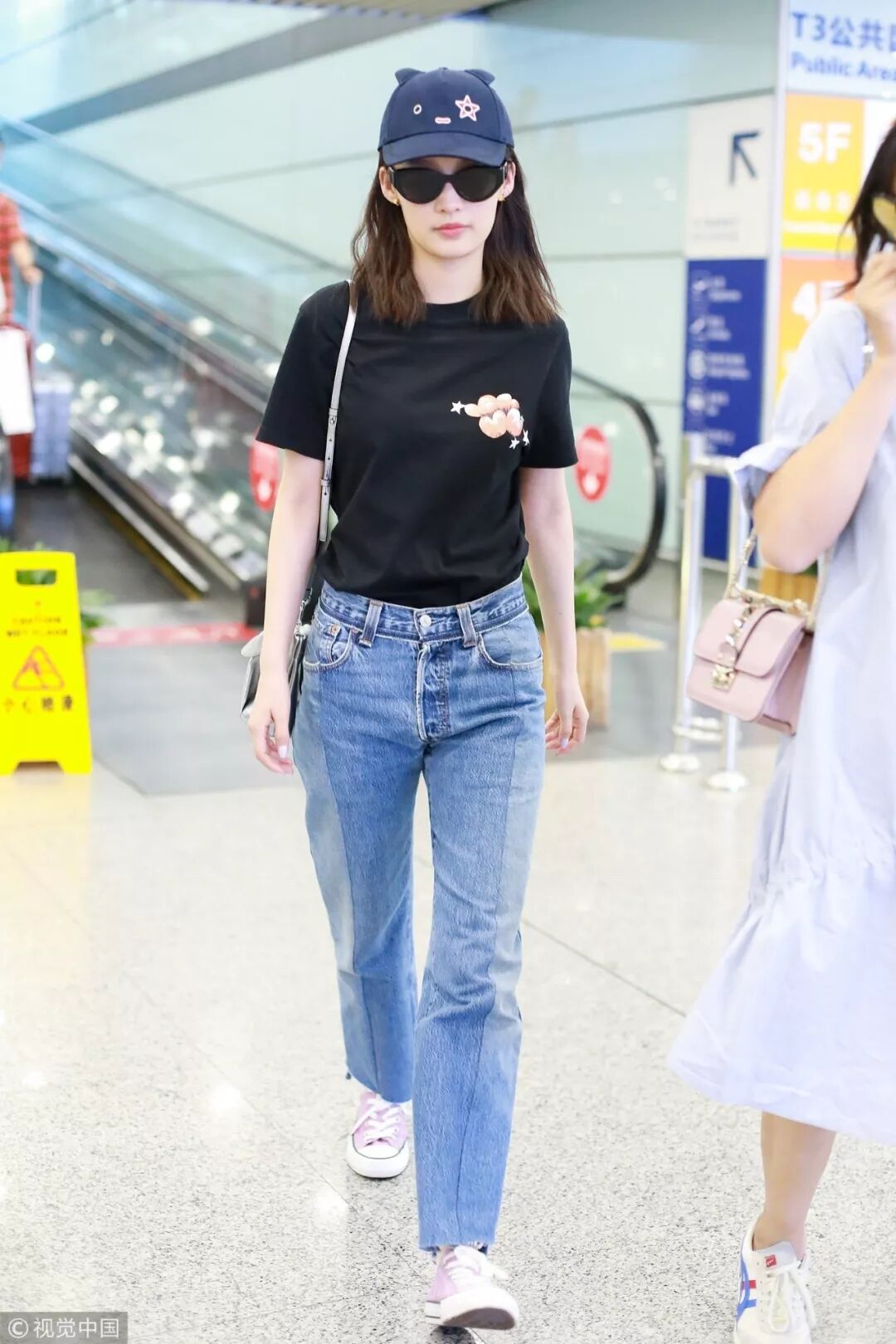 ▲更多的时候都是这种T恤加牛仔裤的标配,拼色牛仔裤的显瘦功力不小,“长出耳朵”的棒球帽又分分钟充满了童趣。