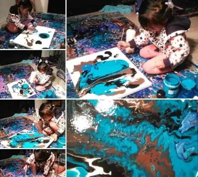 Cassie的绘画工具是画笔、木棍、叉子甚至是玩具珠子,还有孩子们最喜欢的闪光粉。