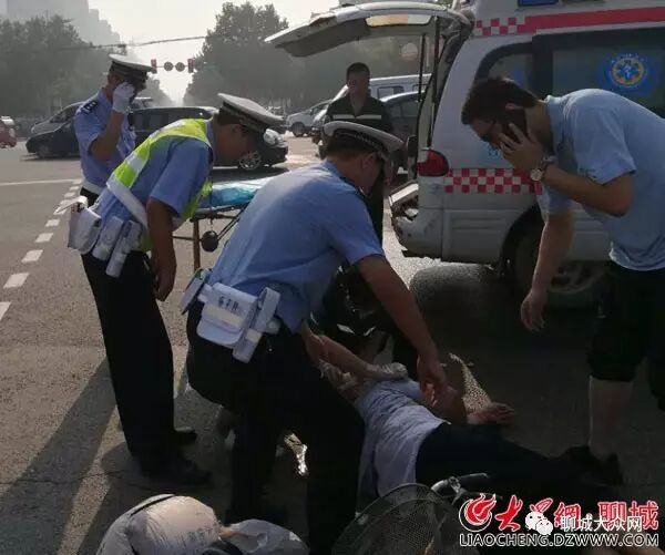 大众网聊城8月10日讯(记者 李长振 通讯员 柳真)10日早上8点20分左右,聊城城区兴华路与昌润路发生一起交通事故,一名驾驶员为闯黄灯将一名正在骑自行车过路口的老人撞的头破血流。
