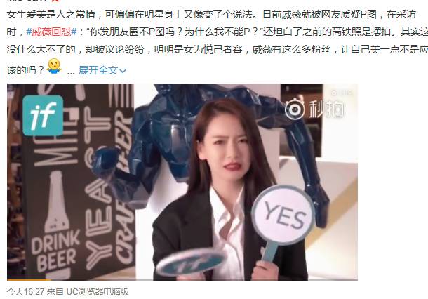 这次戚薇回怼是因为网友质疑她P图,而戚薇霸气回复:“你发朋友圈不P图吗?为什么我不能P?”