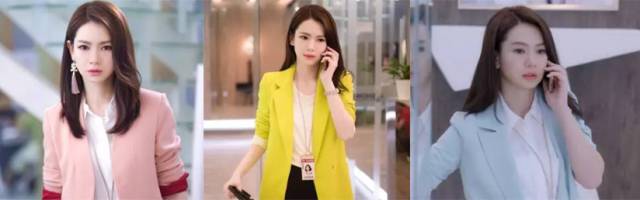 而戚薇在剧里的造型更是各种ol女性的典范