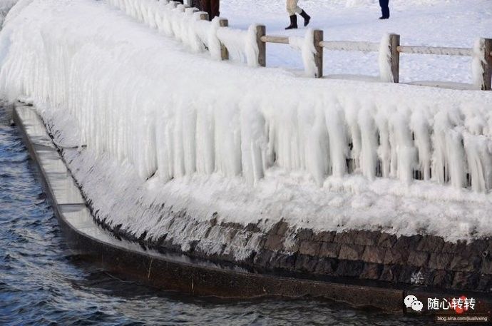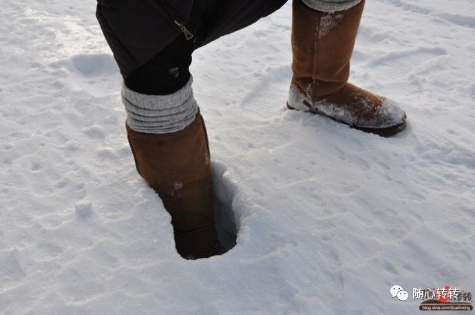 顺着清出的道路行走还是要小心的,地面很滑。要走雪厚的地方。