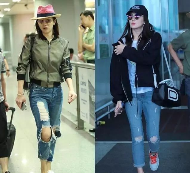 像刘诗诗,赵丽颖这样穿,前者一款简约的T恤搭配牛仔外套,下身搭配休闲裤脚踩小皮鞋,街头感十足,后者则是下身搭配A字半裙脚踩松糕鞋,拉伸腿部线条,看起来及其的显瘦显高