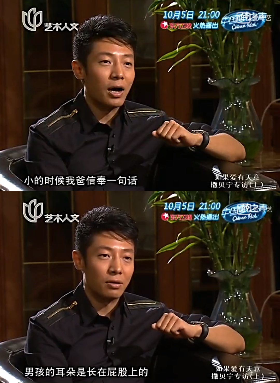 为此,撒贝宁没少挨揍,用他爸爸的话说就是:男孩子的耳朵是长在屁股上的。