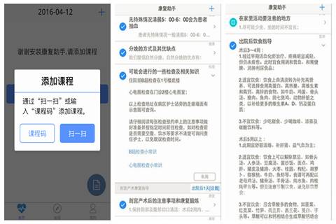 据了解,康复助手通过三个情景会为病患提供服务:患者住院当天,会在护士指导下完成软件下载、扫描病区的二维码或者输入课程码从而导入相关指导课程,了解住院常识、指南、注意事项等等;出院后,患者可以根据自己的需求添加各类康复包,获取营养、疼痛、心理等多方面的康复指导和服务;患者在接受以上服务的同时,和病区也建立了联络通道,病区就可以跟进病患康复情况,病患也可以获得院后康复问题的反馈。