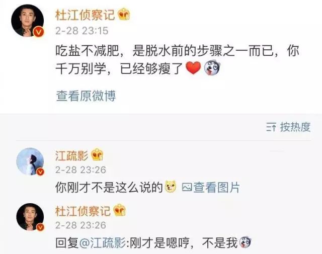 估计女神是效仿最近因为春节档电影《红海行动》大热的主演杜江,他的好身材有目共睹,据说就是靠吃盐减肥。