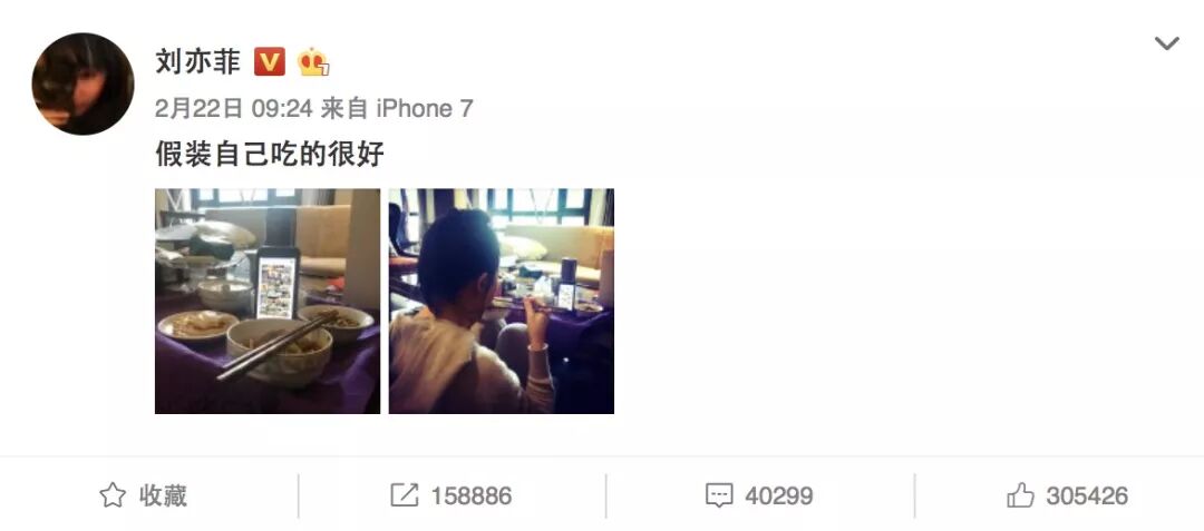 一直被网友吐槽身材不够好的刘亦菲,看来这下是要开始减肥的节奏了啊~嗯,要望图解馋“假装自己吃得很好”……