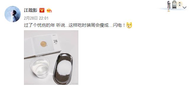如果说袁姗姗的减肥餐还算正常,那么女神江疏影的减肥方法更是简单粗暴——只吃盐。