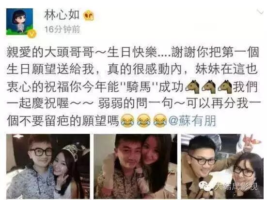 林心如林志颖热恋时,林志颖就因为心如和苏朋友关系太好而吃醋,而苏有朋曾经说过“到了45岁,林心如未嫁我未娶就结婚”。