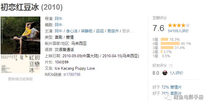 《初恋红豆冰》是阿牛(陈庆祥)的处女作,参加演出的几乎都是来自马来西亚的本土歌手,本片上映时在马来西亚的票房大获350万,几乎刷新当地最高票房纪录。