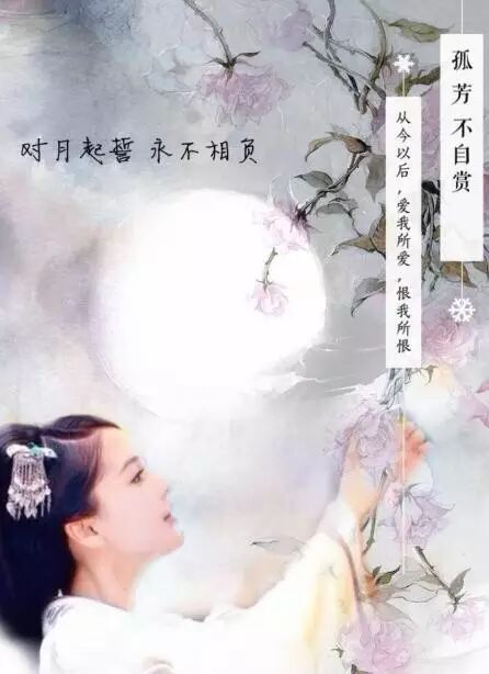 粉丝们自制的《孤芳不自赏》概念海报,虽然剧中扮相还没曝光,但风韵几分还是有了哒,配上了书里的经典句子“对月起誓 永不相负”。