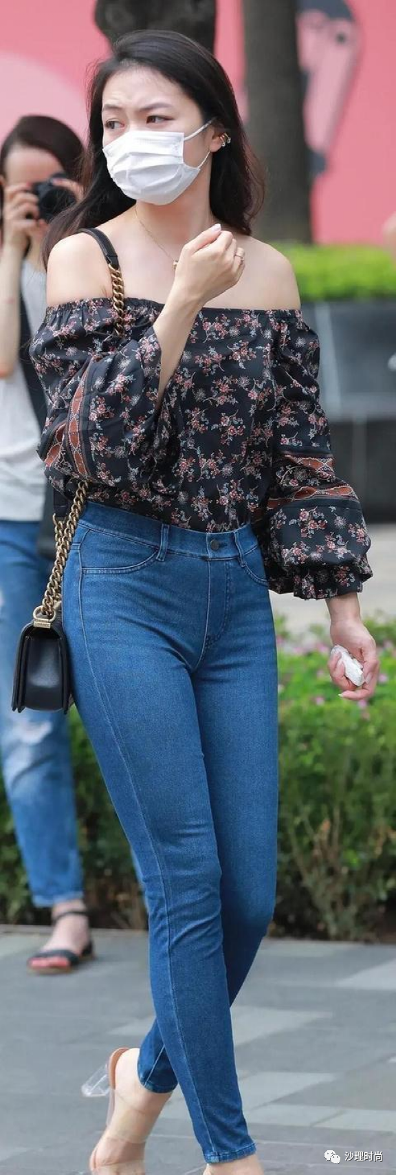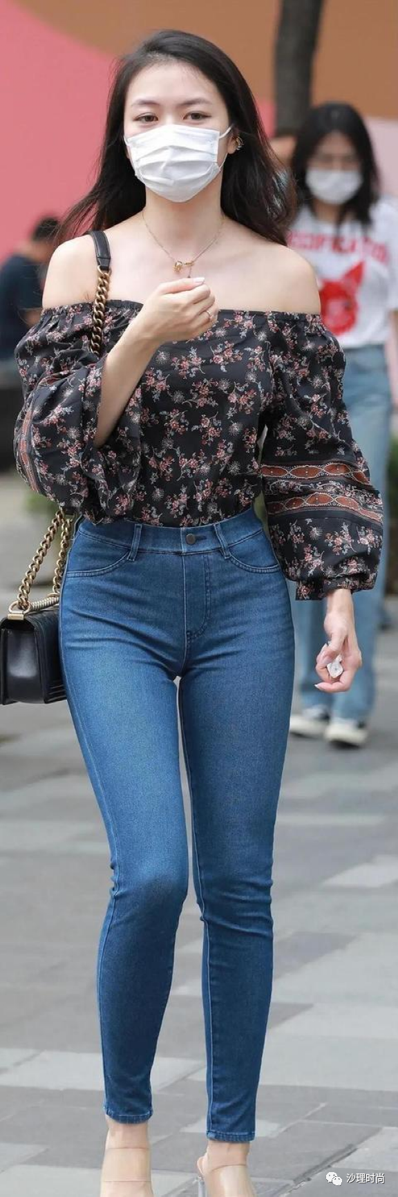那么选择修身铅笔裤好吗?看主要场合。下面我们来看看下图中的场合。铅笔裤的衣身可以算是纯色外套。外套是蓝色的,这意味着蓝色牛仔裤。