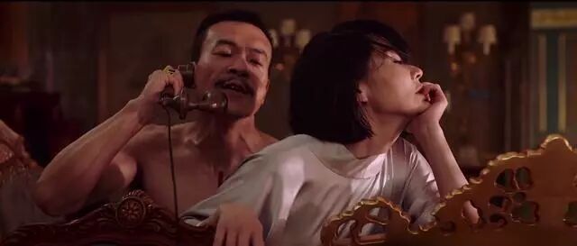 姜文继续带着帽子,这个造型可以目测此前楼梯那位急匆匆的仁兄就是他。他饰演的角色应该是在北平有身份地位的人,更加切合了他蓝董事长的角色猜测。