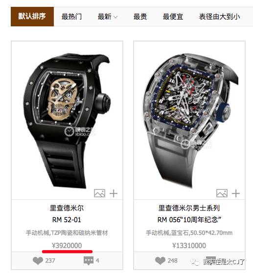 而且还有一块RM056,引起过好多人注意,据说是限量全球限量5只,现在国内的售价已经超过了1300万RMB,