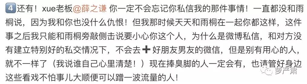 就是这一段:@DDshadow说,薛之谦在跟李雨桐交往期间跟身为闺蜜的自己发微博私信。