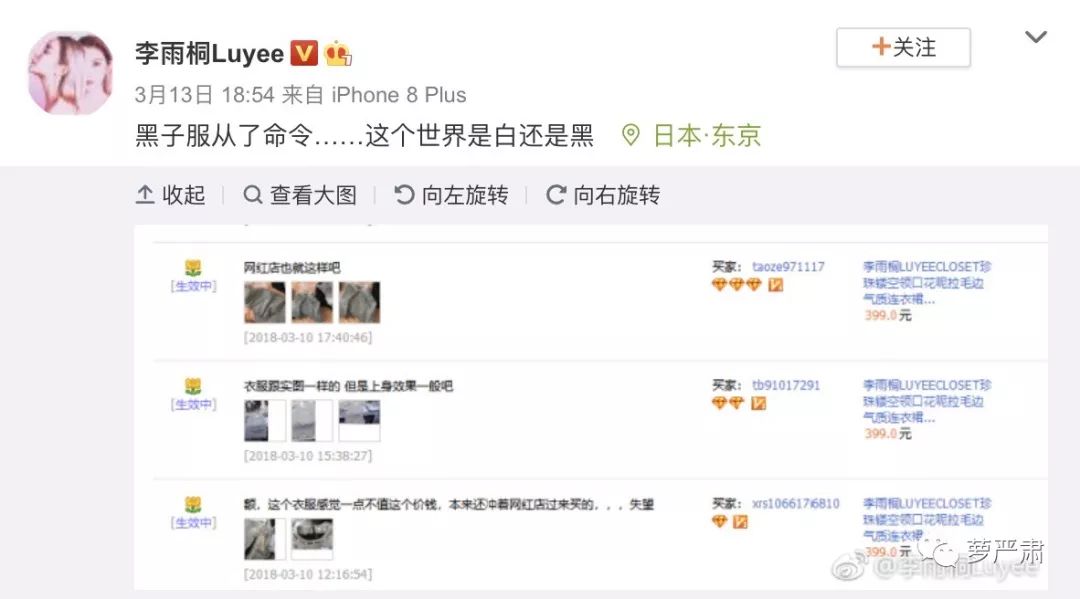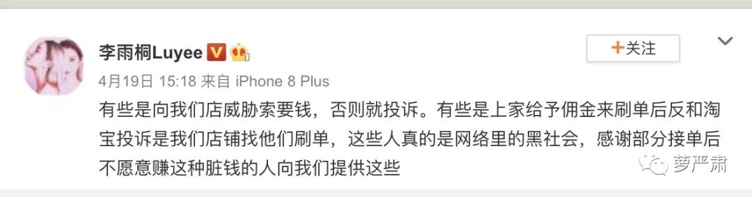 到了4月份李雨桐还在发恶意退货相关,说“每天有很大一部分的工作是面对一些恶意的威胁和恶意退换货”。