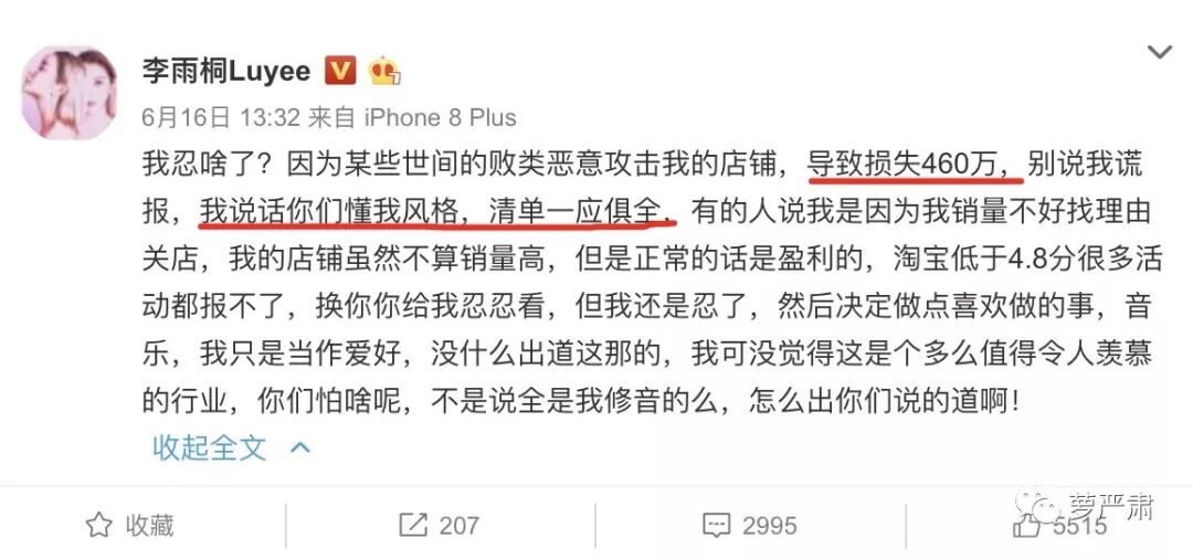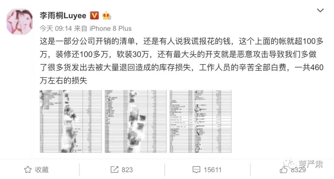 爆发的理由是,李雨桐称,有人恶意攻击她的店铺,导致了460万元的损失。