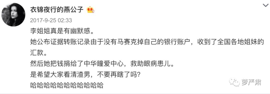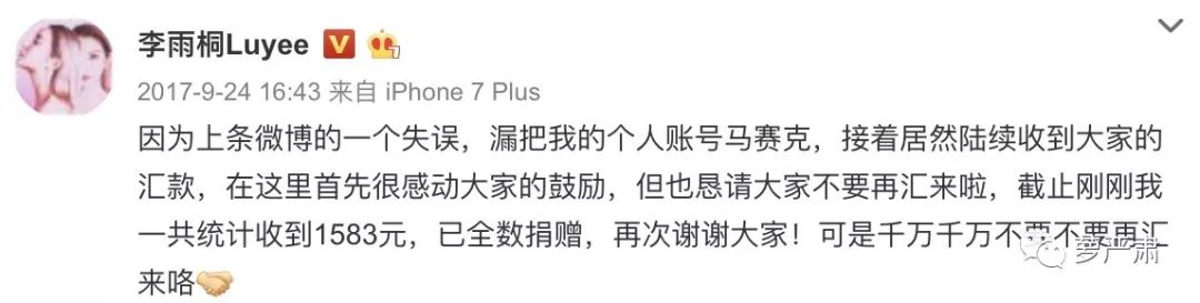那场大战的收盘是李雨桐公布证据的时候一不小心露出了自己的账户导致收到了部分网友的打款1583元。她说自己都捐出去做慈善了。