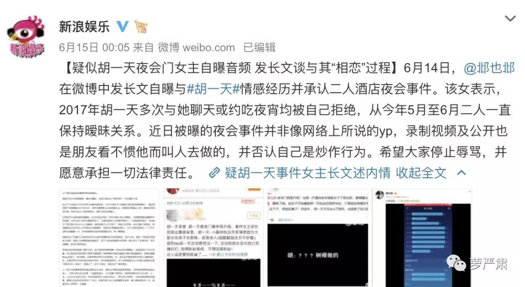 前几天又出现一起直供瓜事件,胡一天被爆料跟一女生酒店相会,然而没有大水花。
