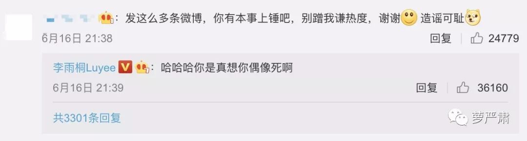 而另一边,李雨桐是这么回复“有本事上锤”这句话的:“哈哈哈你是真想你偶像死啊。”