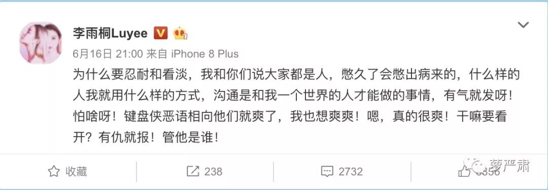除了爆料,李雨桐就是各种撂狠话,被气够呛似的。