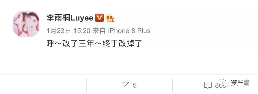 之后她又说终于改掉了自己的微博认证。因为原来认证的品牌信息是李雨桐和薛之谦一起做的淘宝服装品牌。