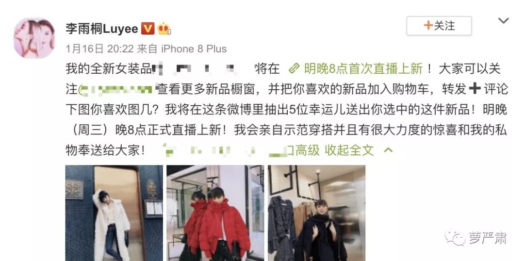 今年1月份,李雨桐宣布做了一个自己的服装品牌。