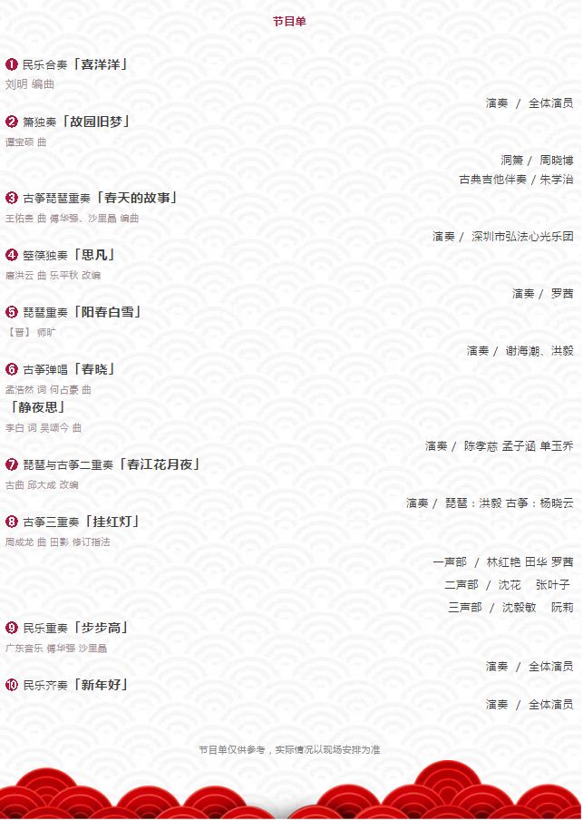 新春的美好属于改革开放浪潮中的深圳,属于我们中国的传统文化艺术。愿读者更加热爱艺术阅读,热爱我们中华文化的曲乐声。
