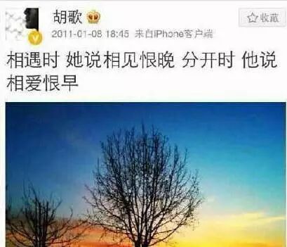 胡歌在杨幂大婚时发的微博