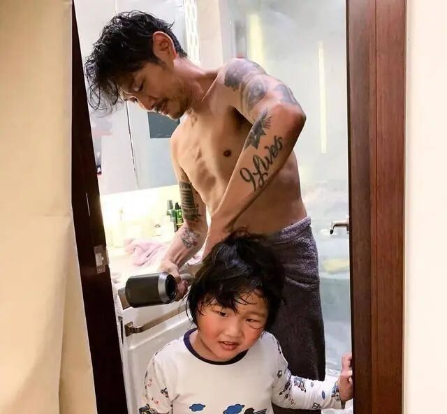 都说老年得子或多或少都会有点悲哀,但看杜德伟给儿子温馨吹头发的画面时,那扎实的腹肌压根儿就不让人想起他的年纪足以做儿子的“爷爷”!